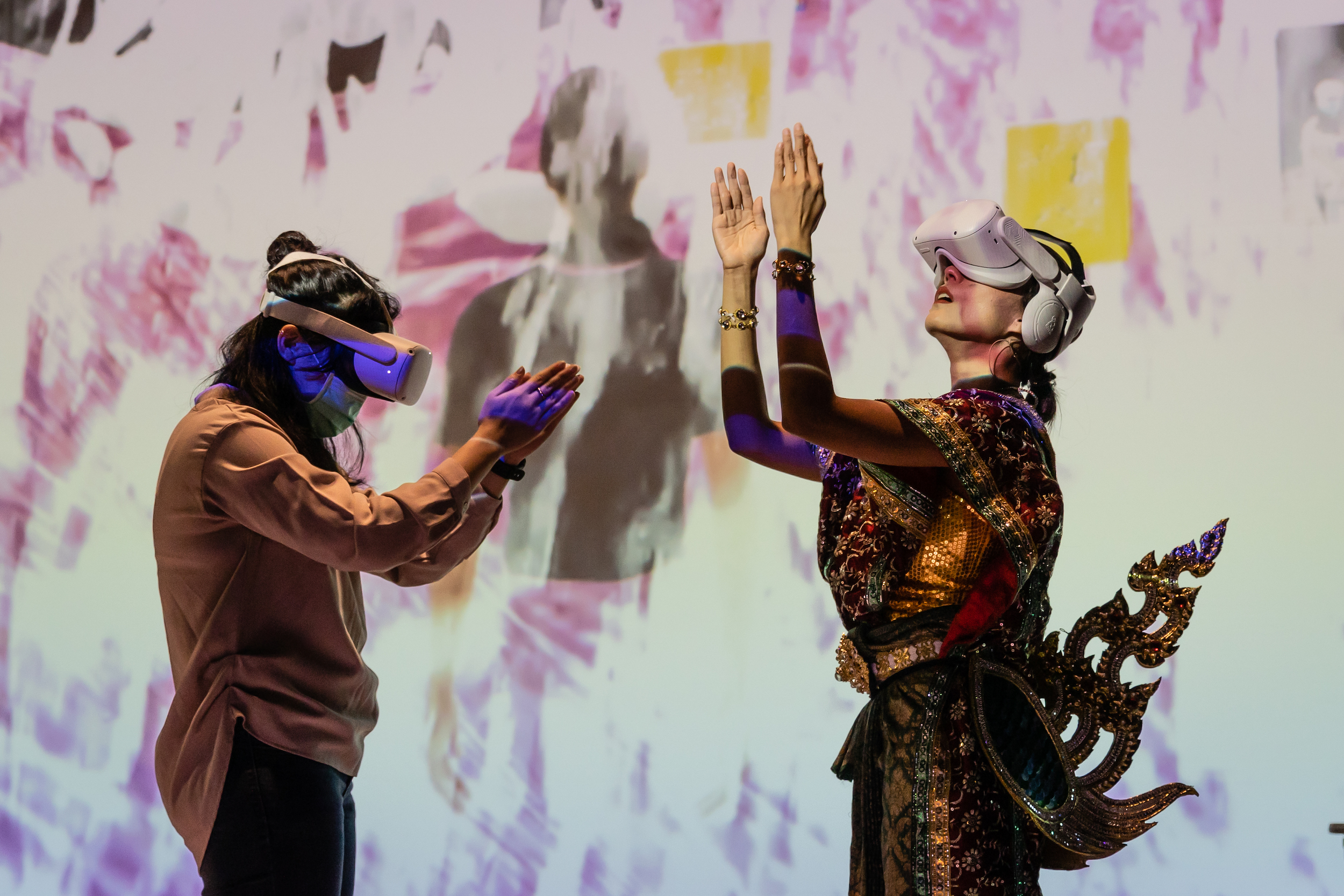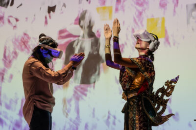 Kornkarn Rungsawang’s MALI BUCHA is a developmental idea that combines augmented reality (AR), virtual reality (VR) and dance. It is a hybrid dance performance that presents an updated and alternative form to the time-honored RUM-KEA-BON where devotees can journey between physical and digital worlds. It is an interactive/immersive performance; audience members are invited to make their wishes or prayers to a digital shrine. The digital shrine is an imaginary space where hopes, desires and beliefs can reside; it is an imaginary space of negotiation between the mundane and the divine.